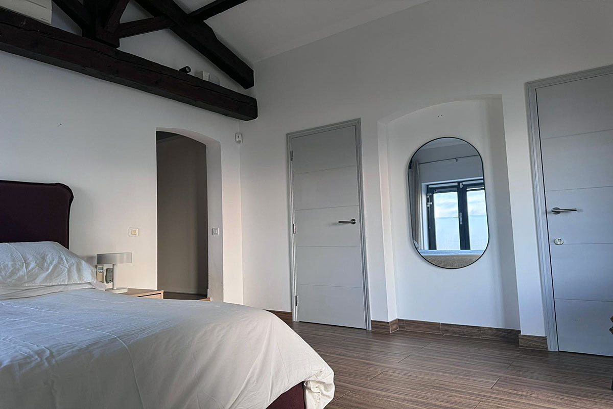King size bed, large wardrobe space, bathroom with bath, separate shower, double wash hand basin, bidet, wc. Two sets of French doors and Juliet balconies.