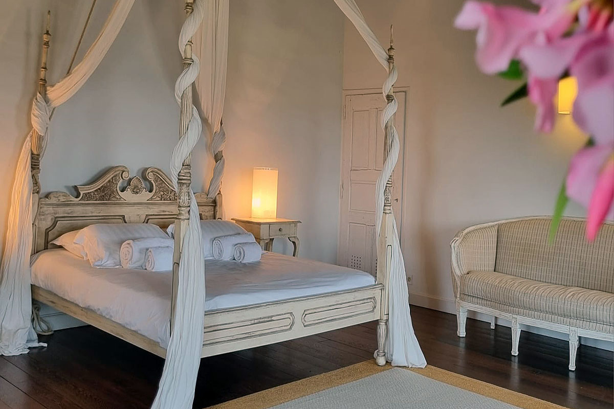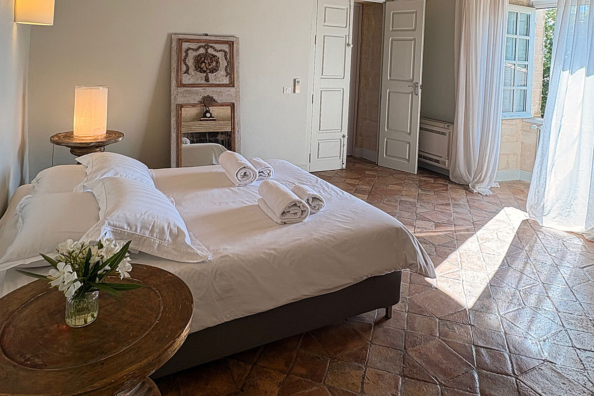 There are 5 suites and one bedroom in the main chateau, the suites which are more like apartments as they are so large (60m2 -80m2), combine historical character with modern comfort, offering flexibility for families, couples, and friends.