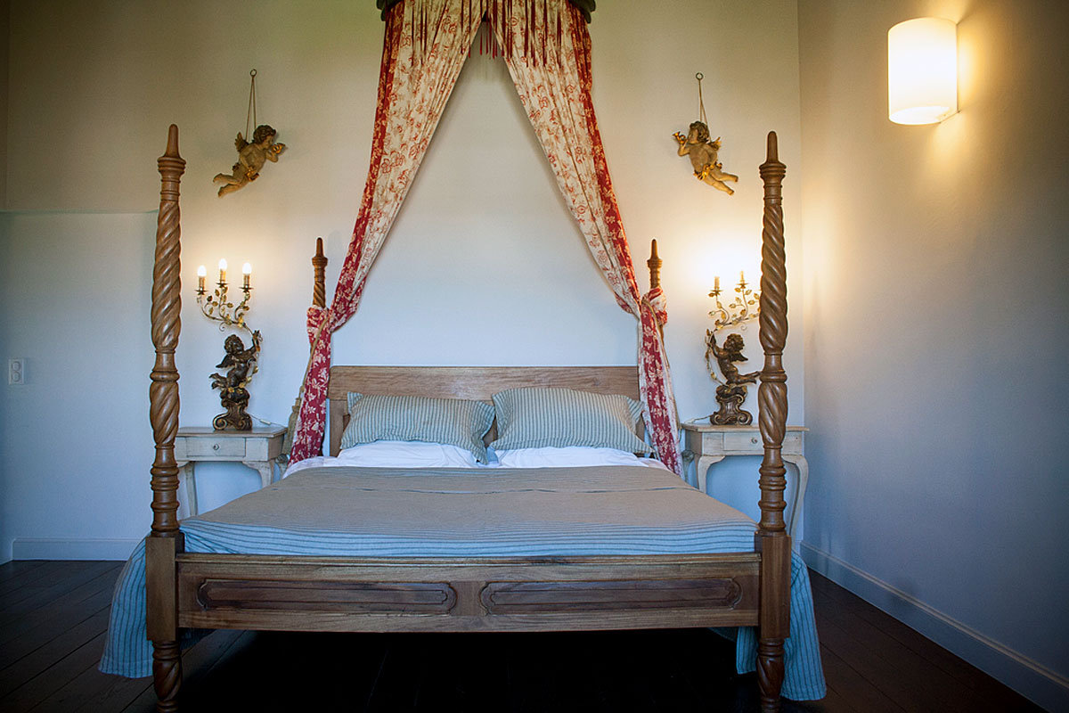 The main chateau has 5 suites and 1 bedroom that can comfortably sleep 12 adults and 4 children, the Pigeonnier can sleep another 2 adults and 2 children, so a total of 20 people.