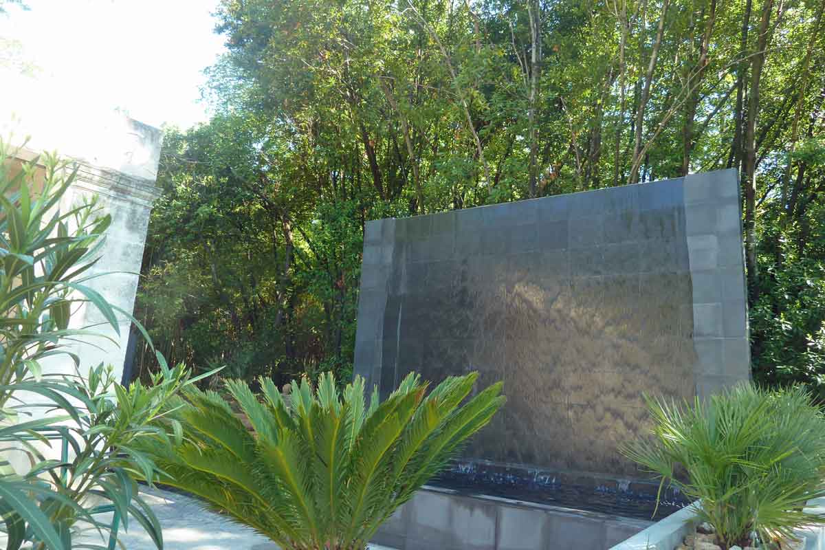 Clients renting the Orangerie have access to the main pool at HE097A Domaine Occitania and communal areas. The magnificent salt water infinity pool, 24m x 6m x 0.20cm-1.3m-1.8m, is shared by all 8 properties. At the shallow end a 'plage Californie' (depth 20cm) with 3 stone islands and Roman steps between each one lead down to the deeper section. The finish of black and basalt glass mosaic, complements the surrounding greenery and attracts the summer heat raising the pool temperature a couple of degrees higher than traditional blue tiles.