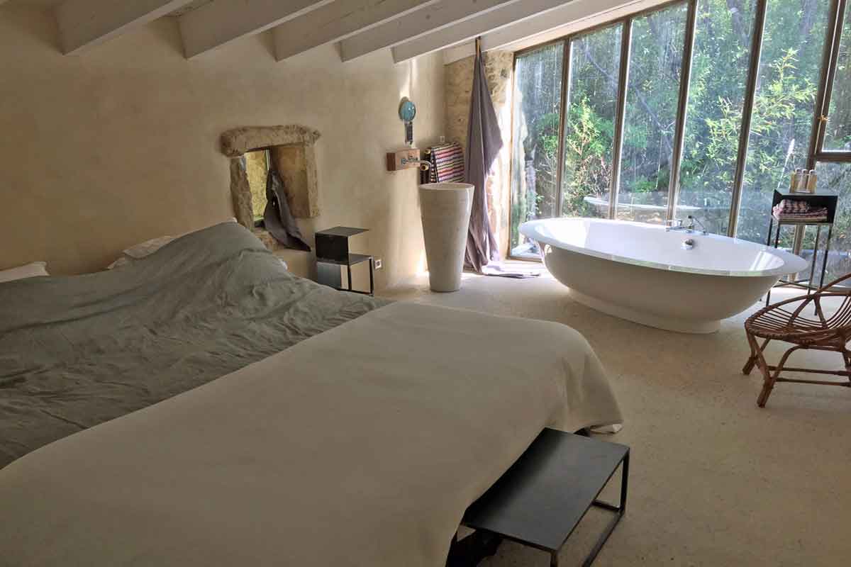 Tucked away, in the heart of the Chateau Parc, this luxurious South of France Vacation property has been sympathetically renovated using the traditional materials of old stone, cement tiles and lime walls and mixing modern with vintage furnishings.